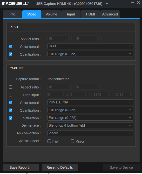 I have a source (Fuji Film XT-4) which is known to send full (data) range video over HDMI. When monitoring this source captured using AVIO 4k it appeared in legal (TV) range. I’m wondering if this is intentionally and whether there is a possibility to get original (full range) from the AVIO 4k?