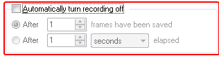 - To use the record button/control to stop saving images, leave Automatically turn recording off unchecked; otherwise, check the checkbox and specify your limit in frames or seconds.