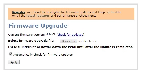 You need the serial number of your Pearl device to register. The serial number appears on a sticker attached to the bottom of the device. You can also see the serial number using the front screen menu when you select System > Device Information.