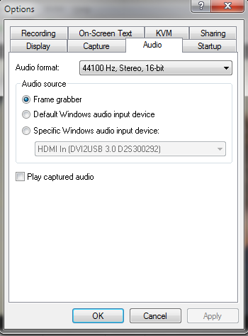 1. If capturing embedded SDI audio, select Frame Grabber.