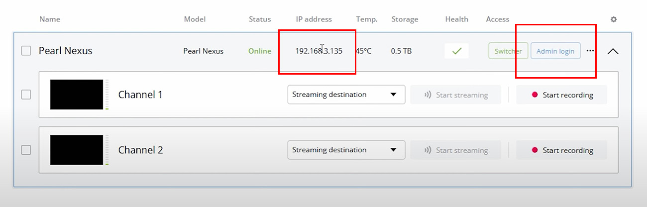 There are several ways to access your Pearl’s Admin panel or pair the device to Epiphan Edge.