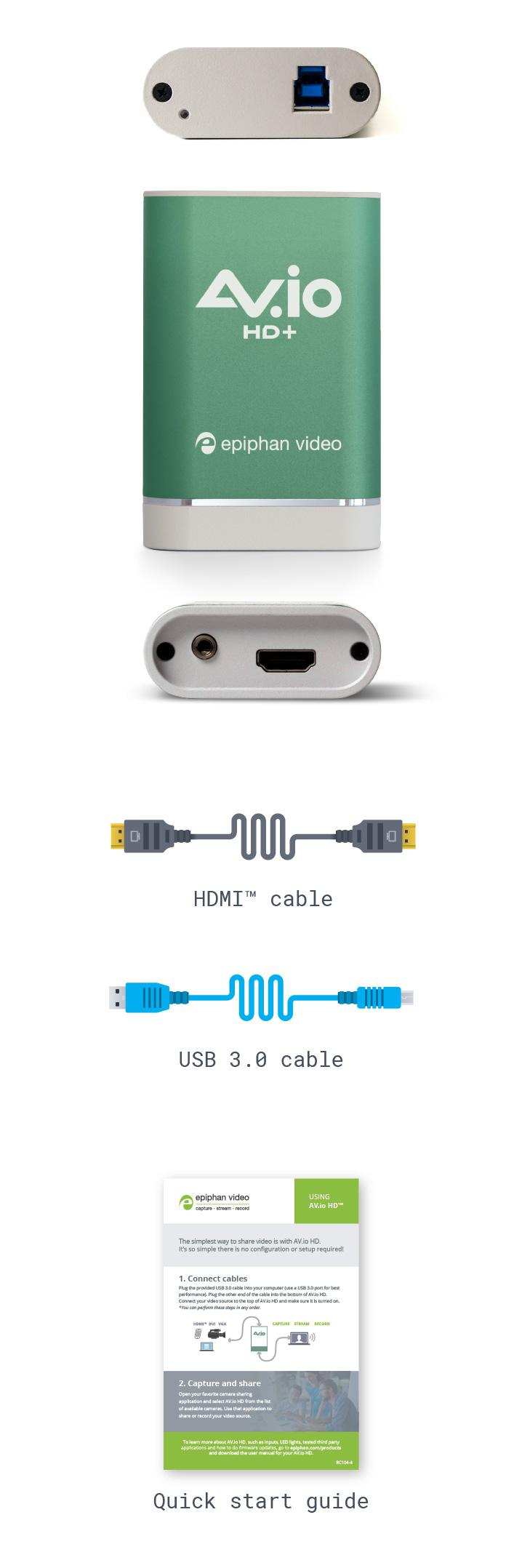 AV.io HD+ comes with everything you need to capture HD video.