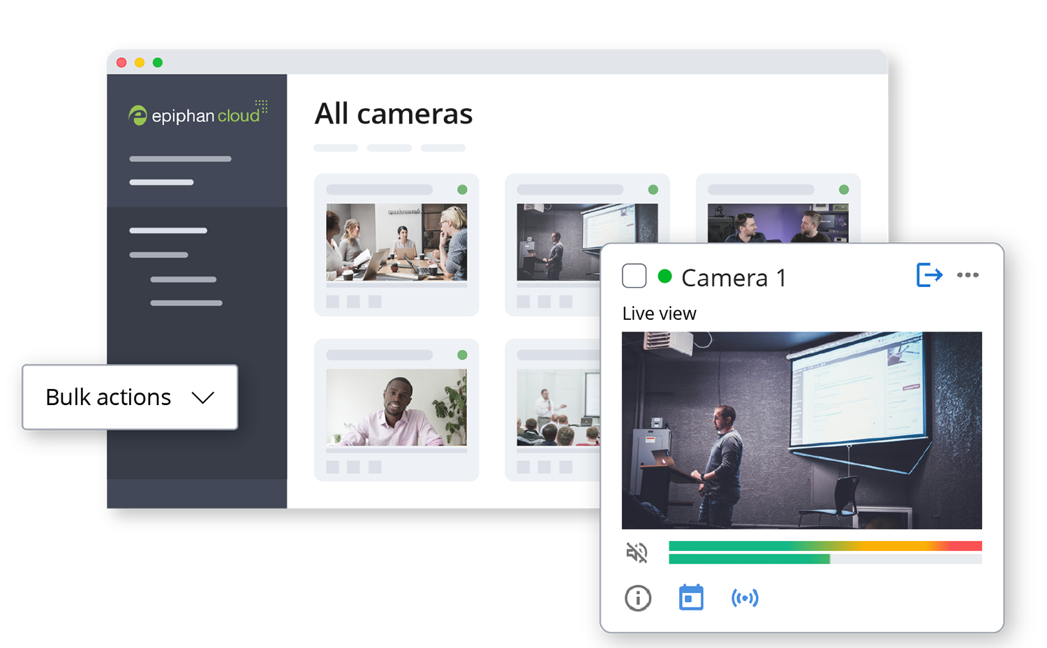 EC20 paired with Epiphan Edge rethinks how cameras are deployed and operated at scale. It’s the first PTZ camera designed to run as part of a cloud-managed fleet, delivering instant, fleet-wide visibility with cloud management built in by design.