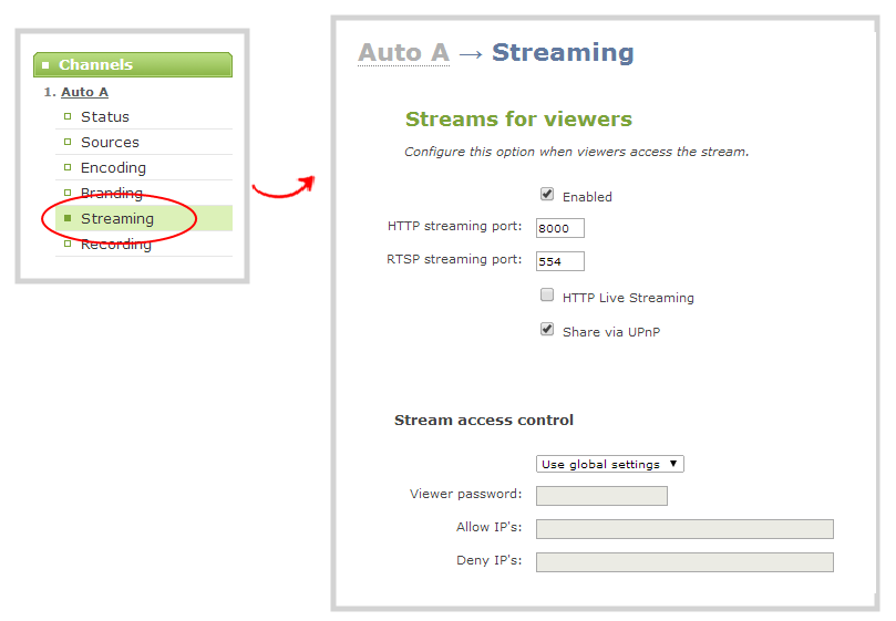 Configure HTTP and RTSP streaming ports
