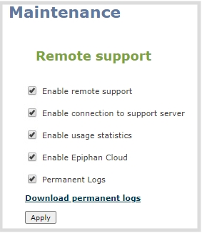 Enable connection to maintenance server to enable outgoing links to the Epiphan maintenance server epiphany.epiphan.com. - Click