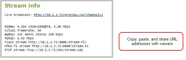 Or choose one of the other channel stream URLs if your viewers prefer to watch using a media player, see View the streaming URL using a media player.