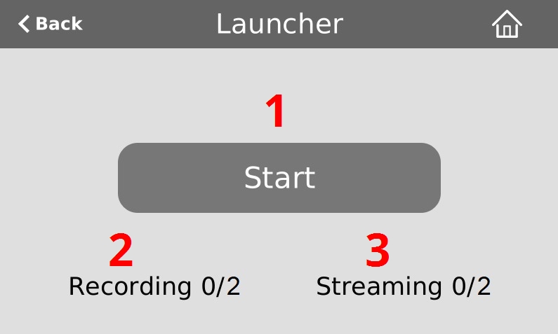 | 1 | Start/stop button: Press the Single Touch control button to start or stop streaming and recording for all specified channels and recorders. |