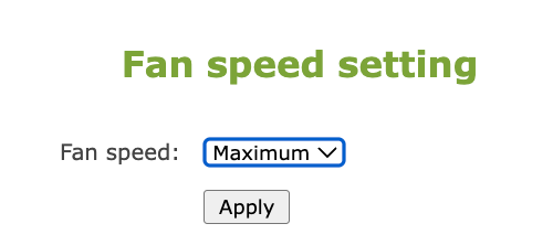 Maintenance . - Under Fan speed setting, select either Maximum or Auto and click Apply.