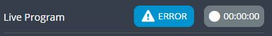If the stream fails to publish, the streaming button flashes blue and displays ERROR. Check the streaming settings for your channel using the Admin panel.