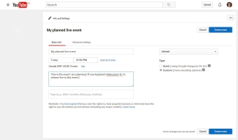 - If you have not already created your YouTube Live Event, create it now on YouTube.